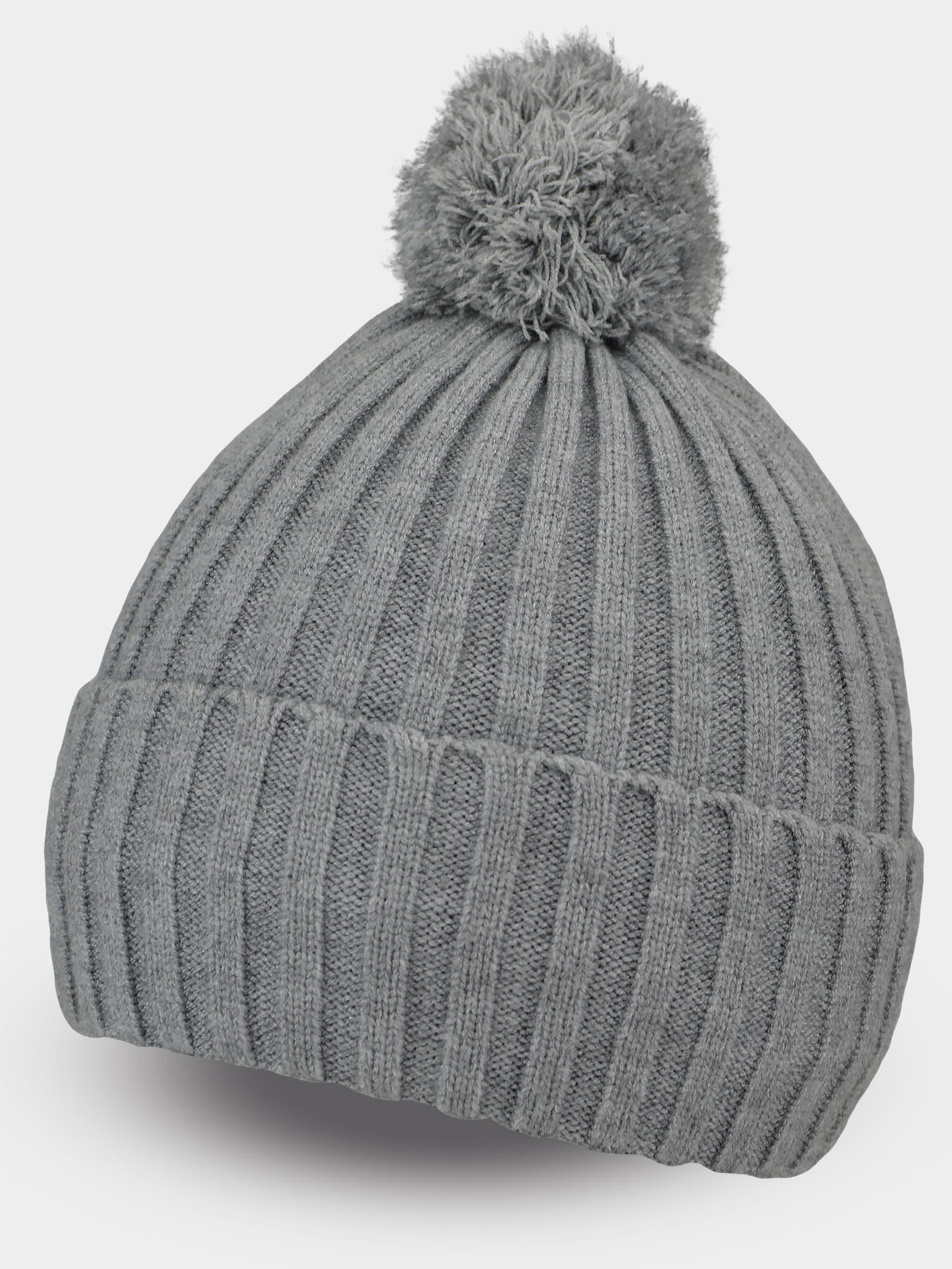 CZ077-B-02 Czapka zimowa chłopięca polar wywijana pompon szary melanż