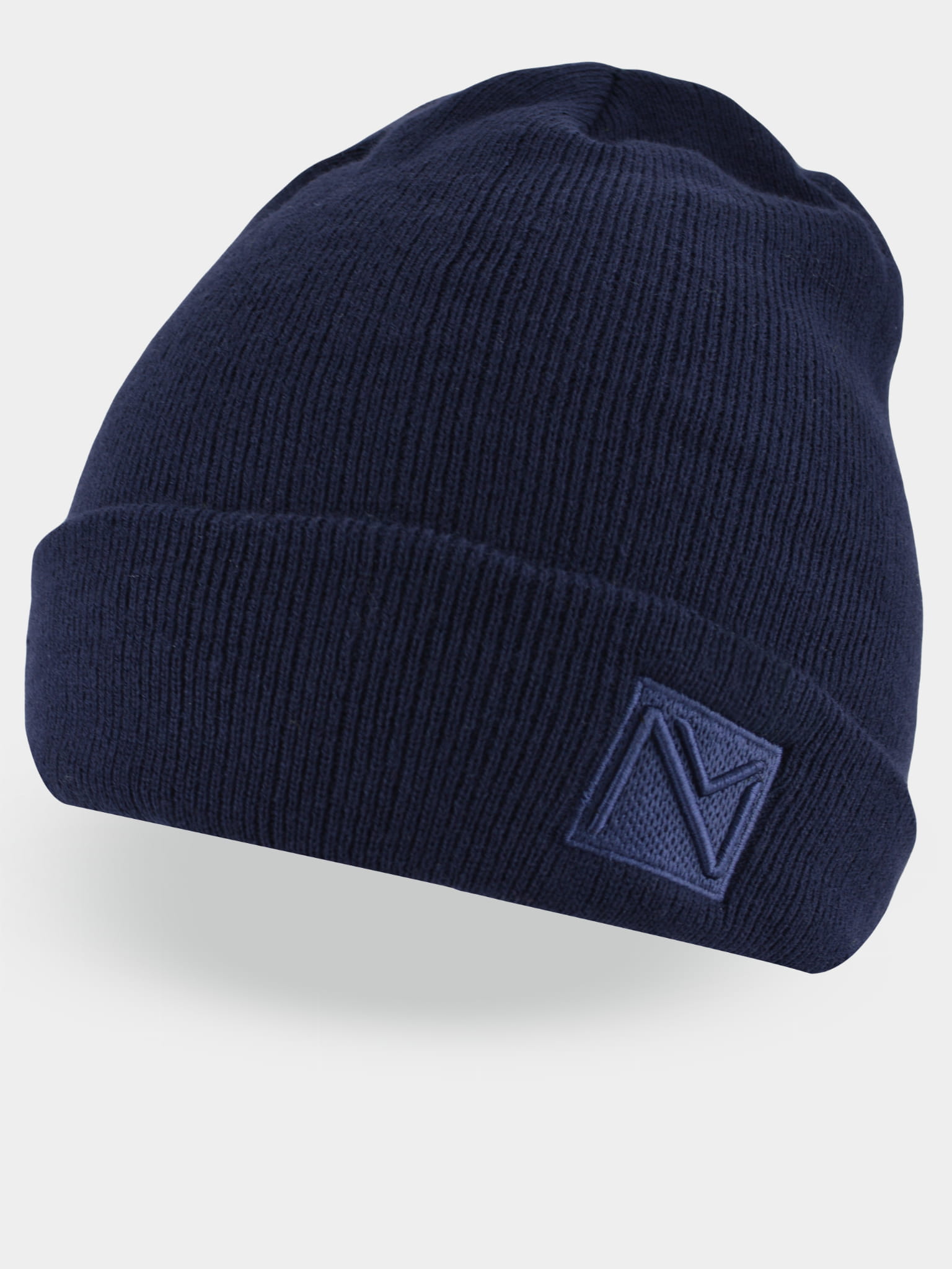 CZ089-M-01 Czapka zimowa męska wywijana z naszywką granat