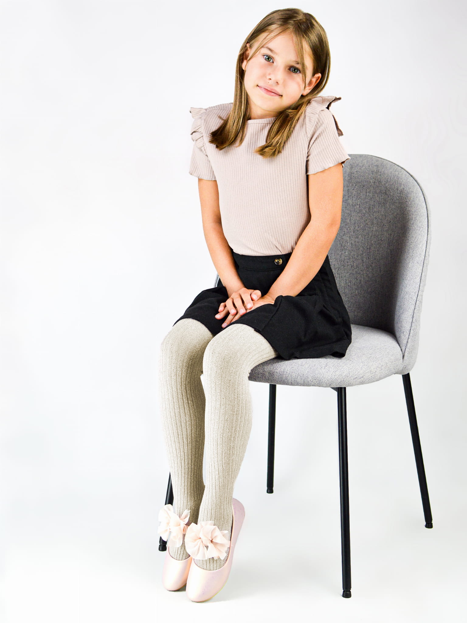RB005-G-03 Rajstopy prążek beż z beżowym lureksem