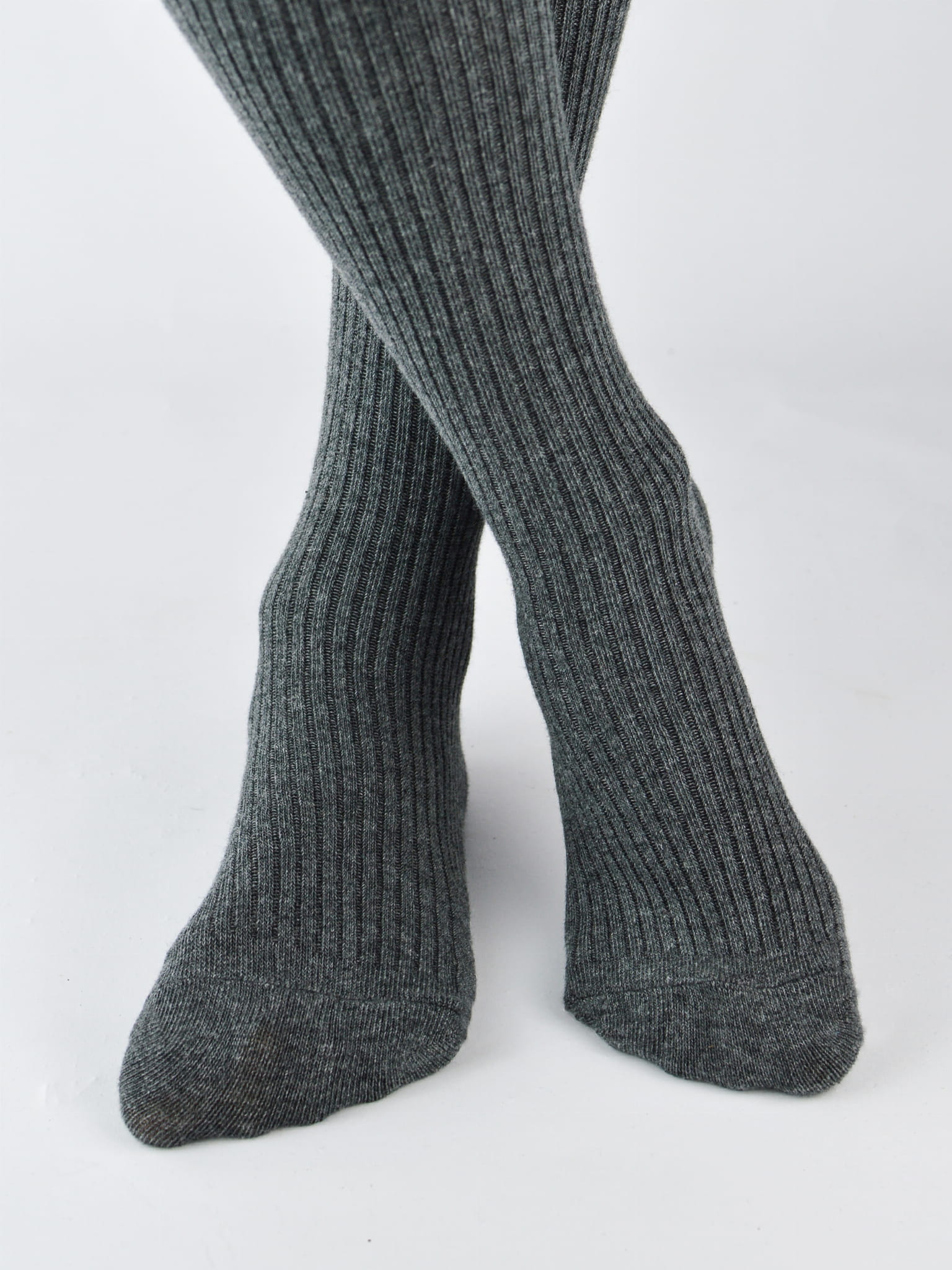 RB007-G-04 Rajstopy bawełniane prążek grafitowy melanż
