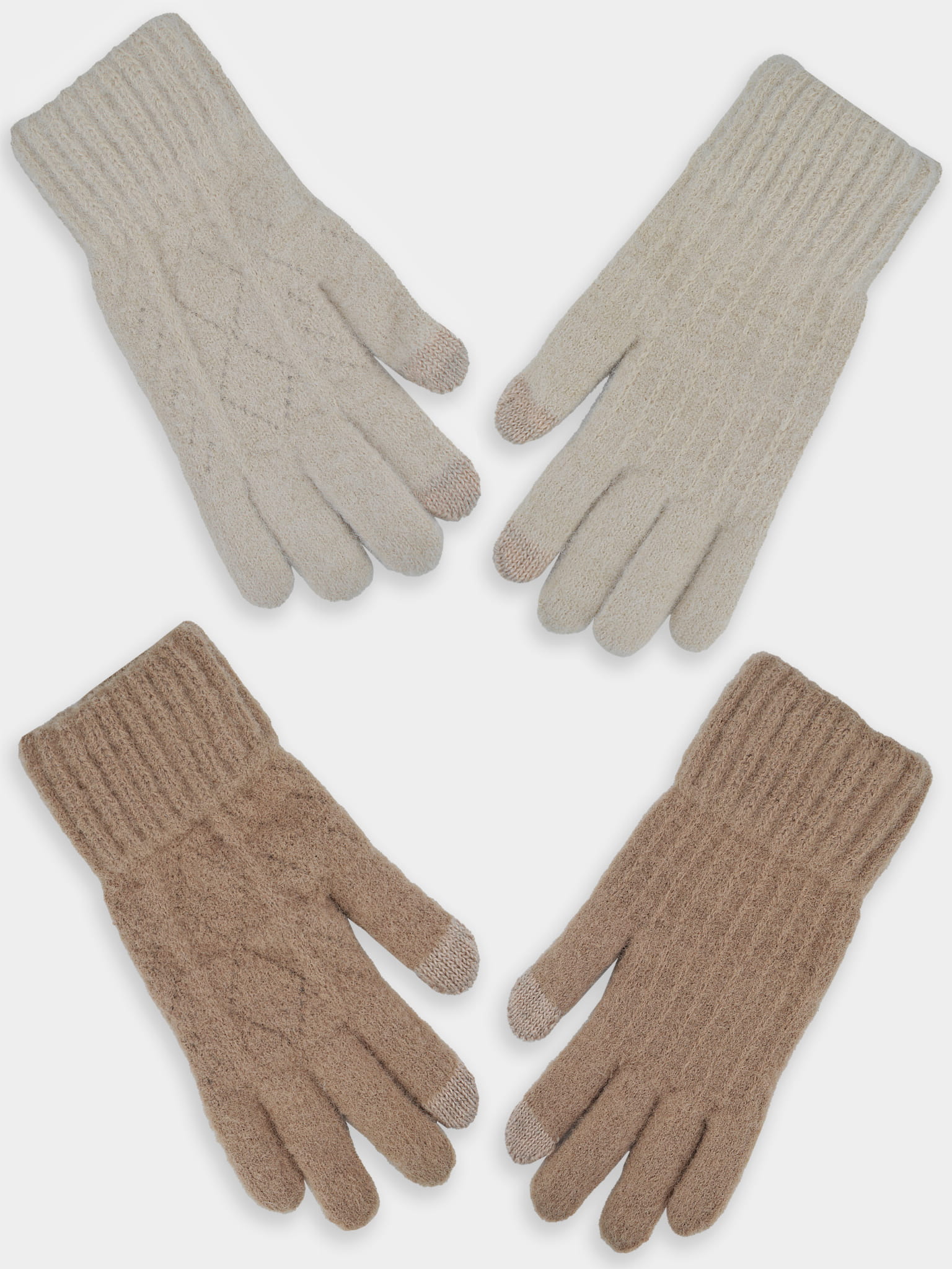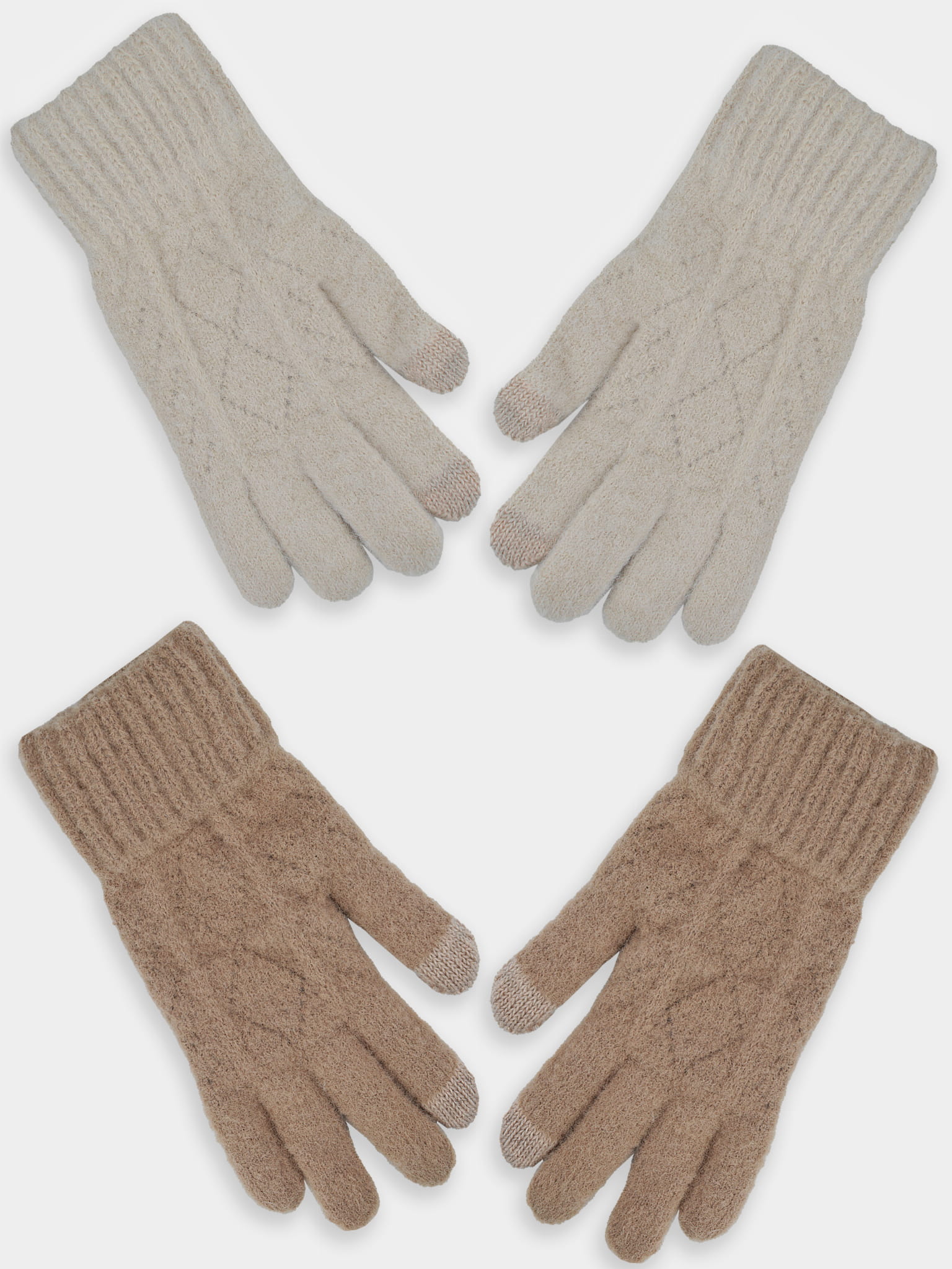 RZ054-W-01 Rękawiczki damskie 5P puchate TS pojedyncze romby