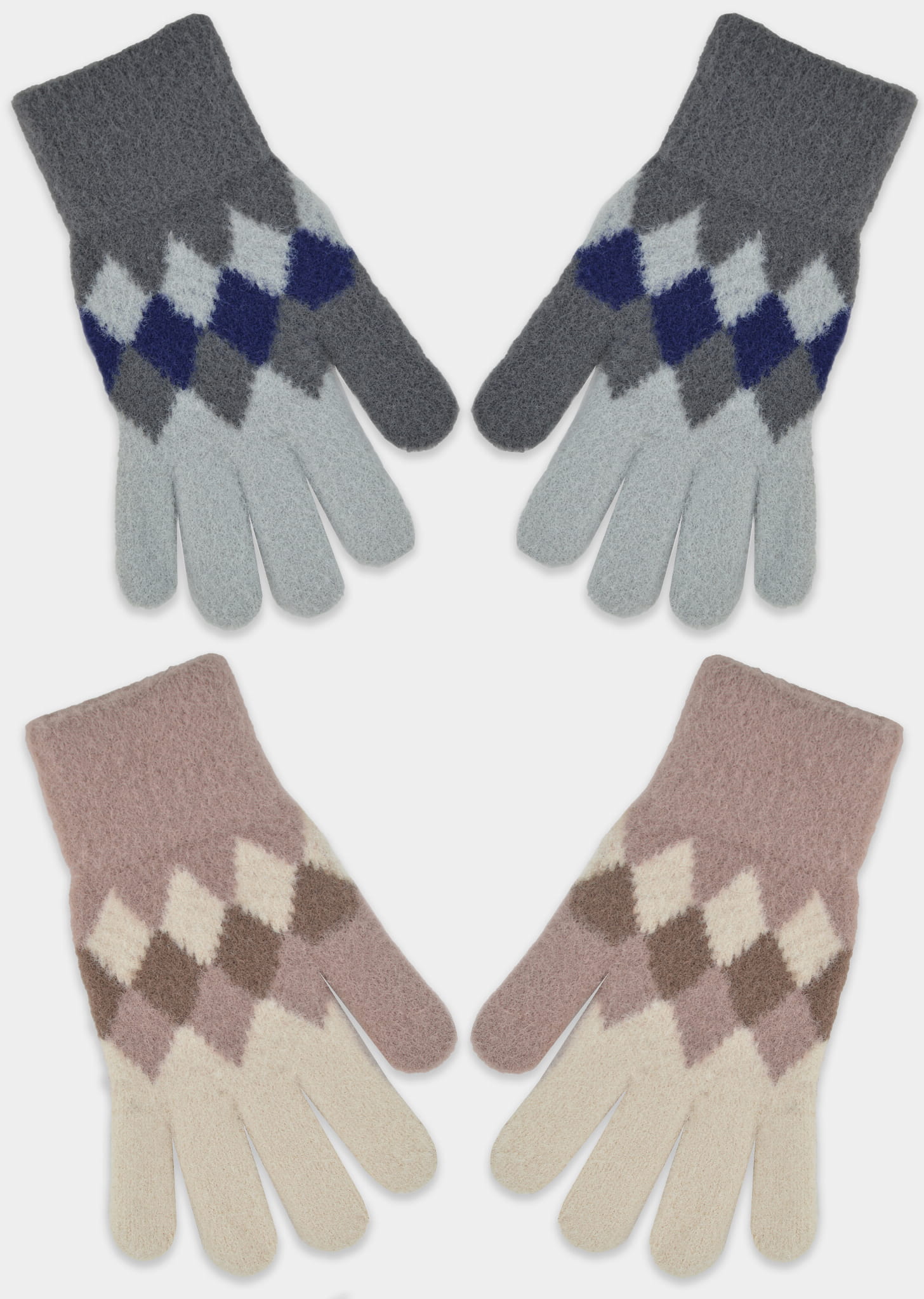 RZ057-W-01 Rękawiczki damskie 5P puchate TS pojedyncze romby