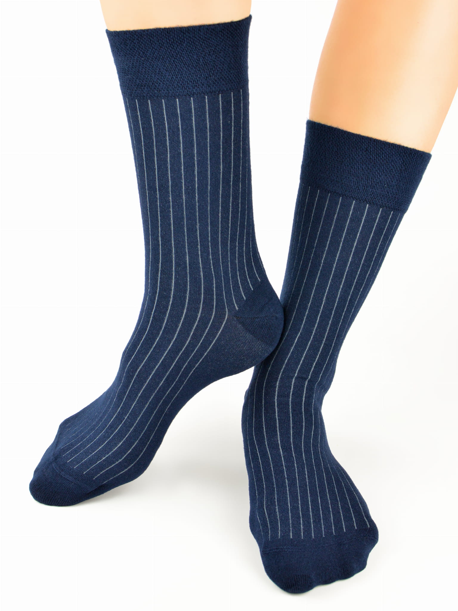 SB004-M-14 Skarpety bambusowe eleganckie M14 granatowe w szare paski