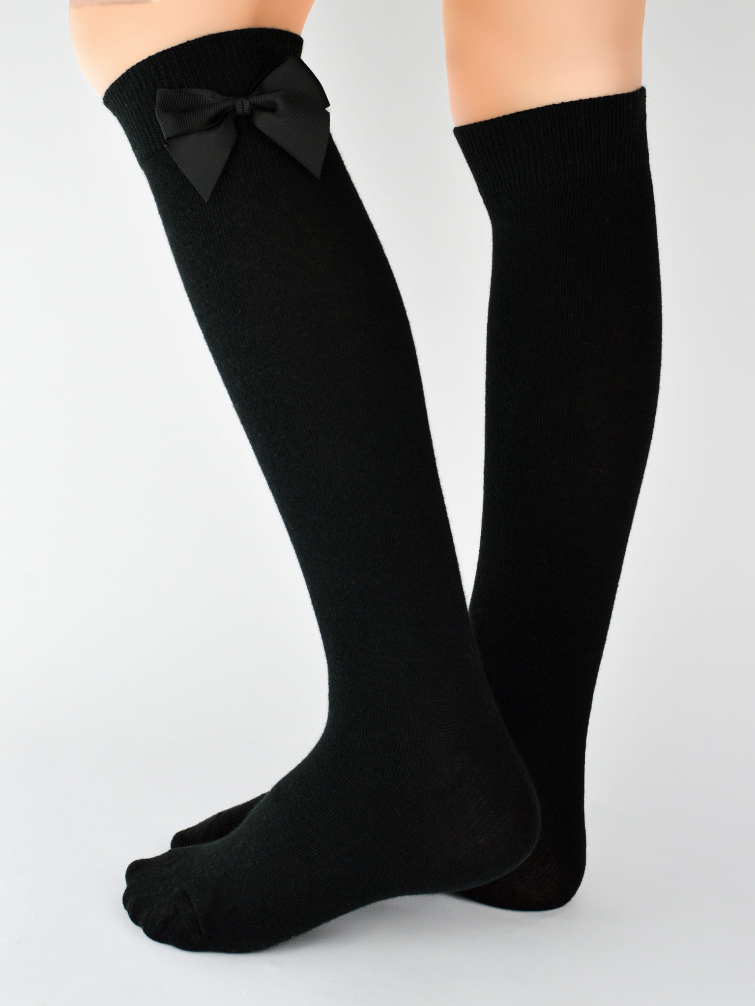 SB073-G-02 Skarpety podkolanówki z czarną kokardką czarne
