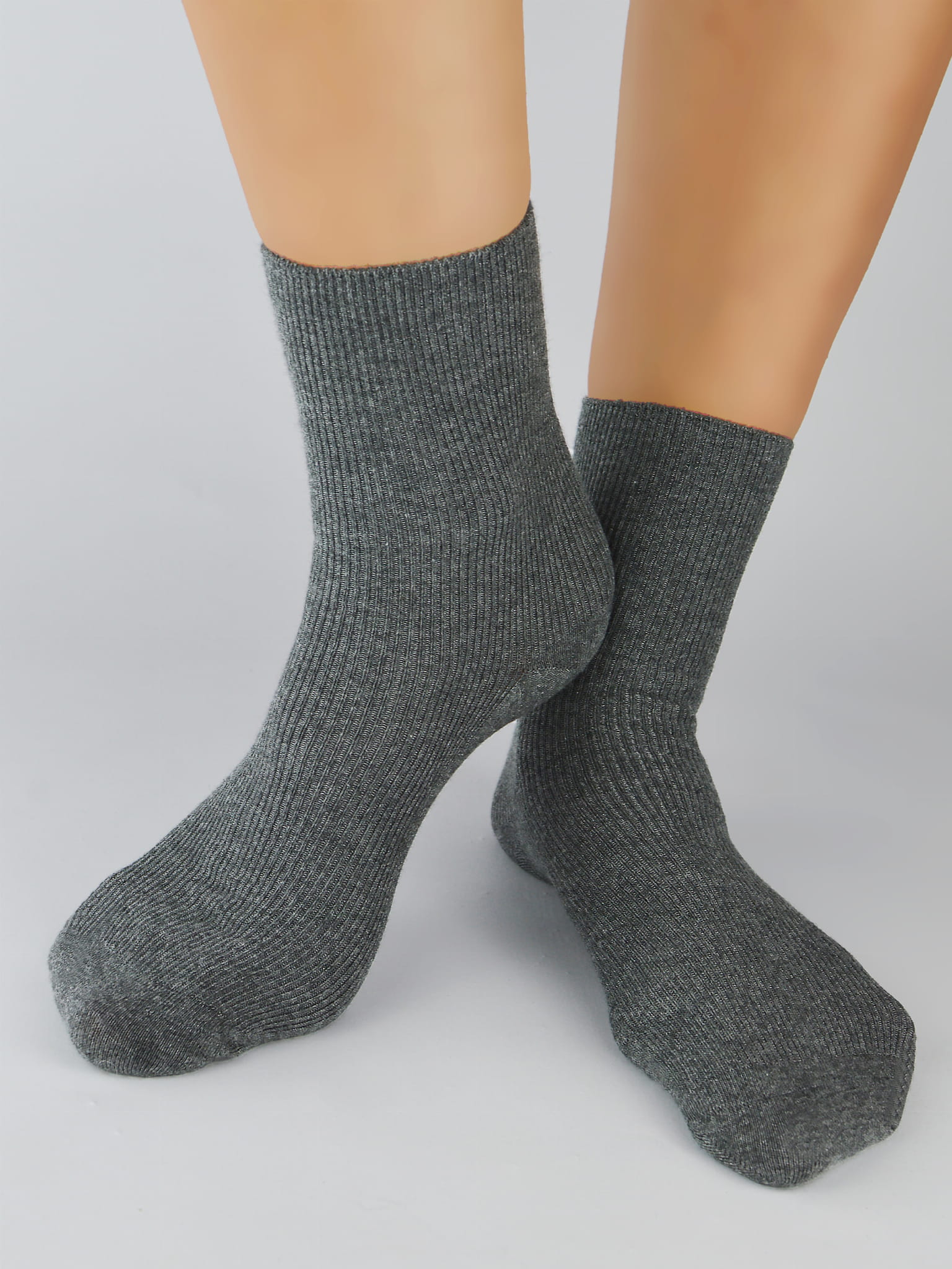 SB075-W-04 Skarpety damskie bezuciskowe z lureksem prążek szary melanż