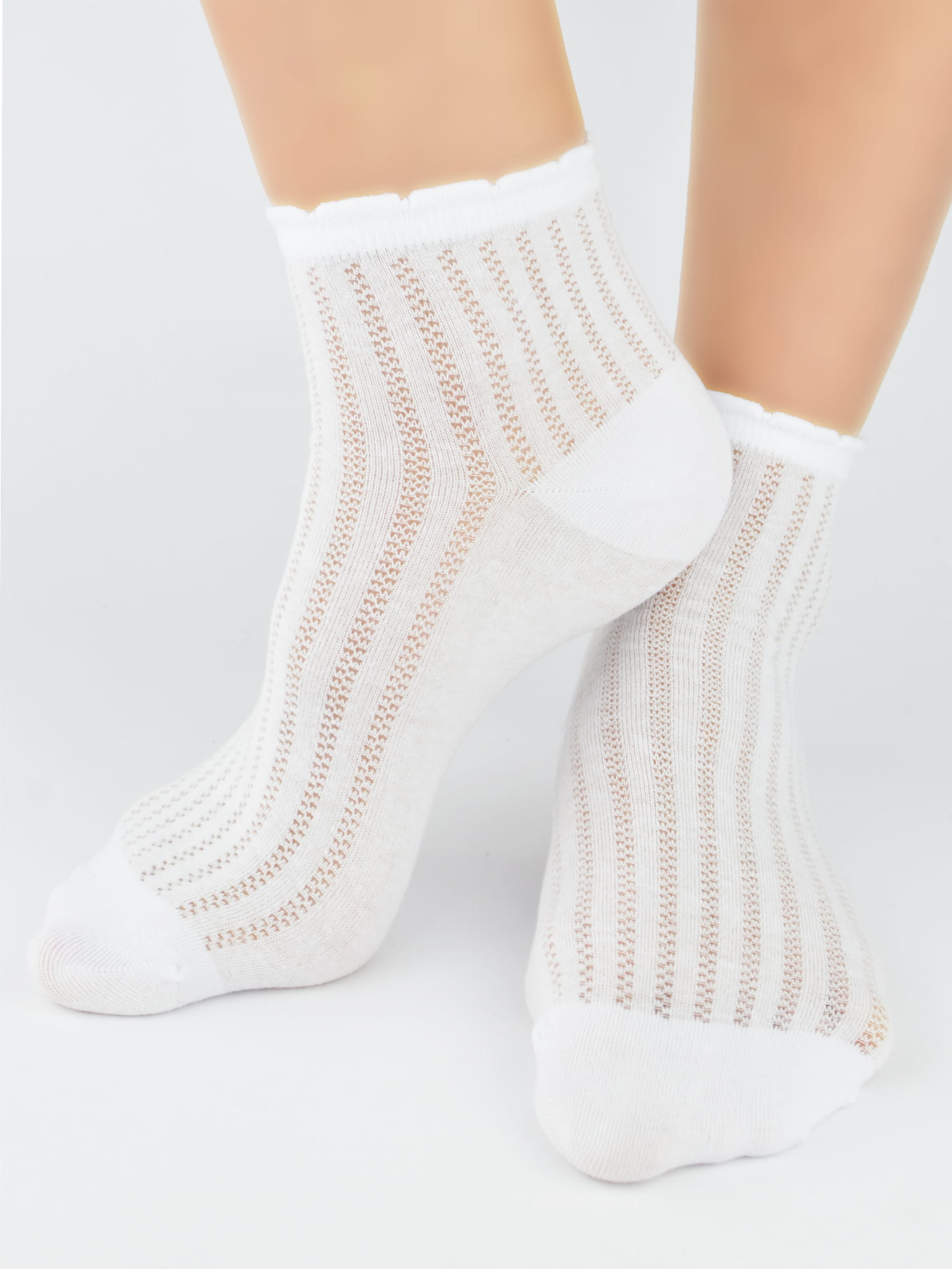 SB120-G-01 Skarpety żakardowe prążek za kostki białe