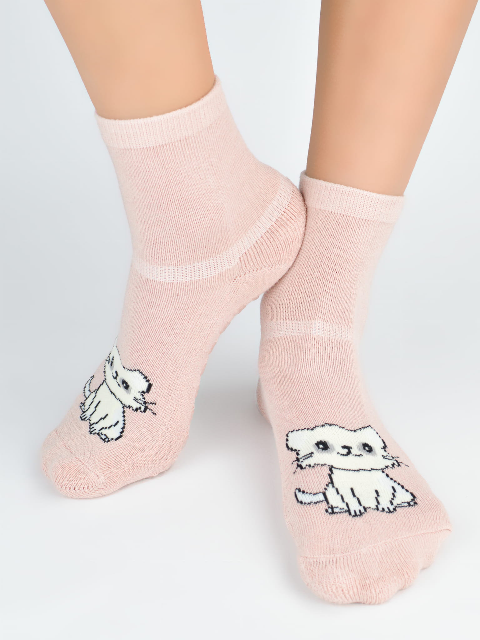 SF021-G-02 Skarpety dziewczce półfrotte z silikonem zwierzaki mix