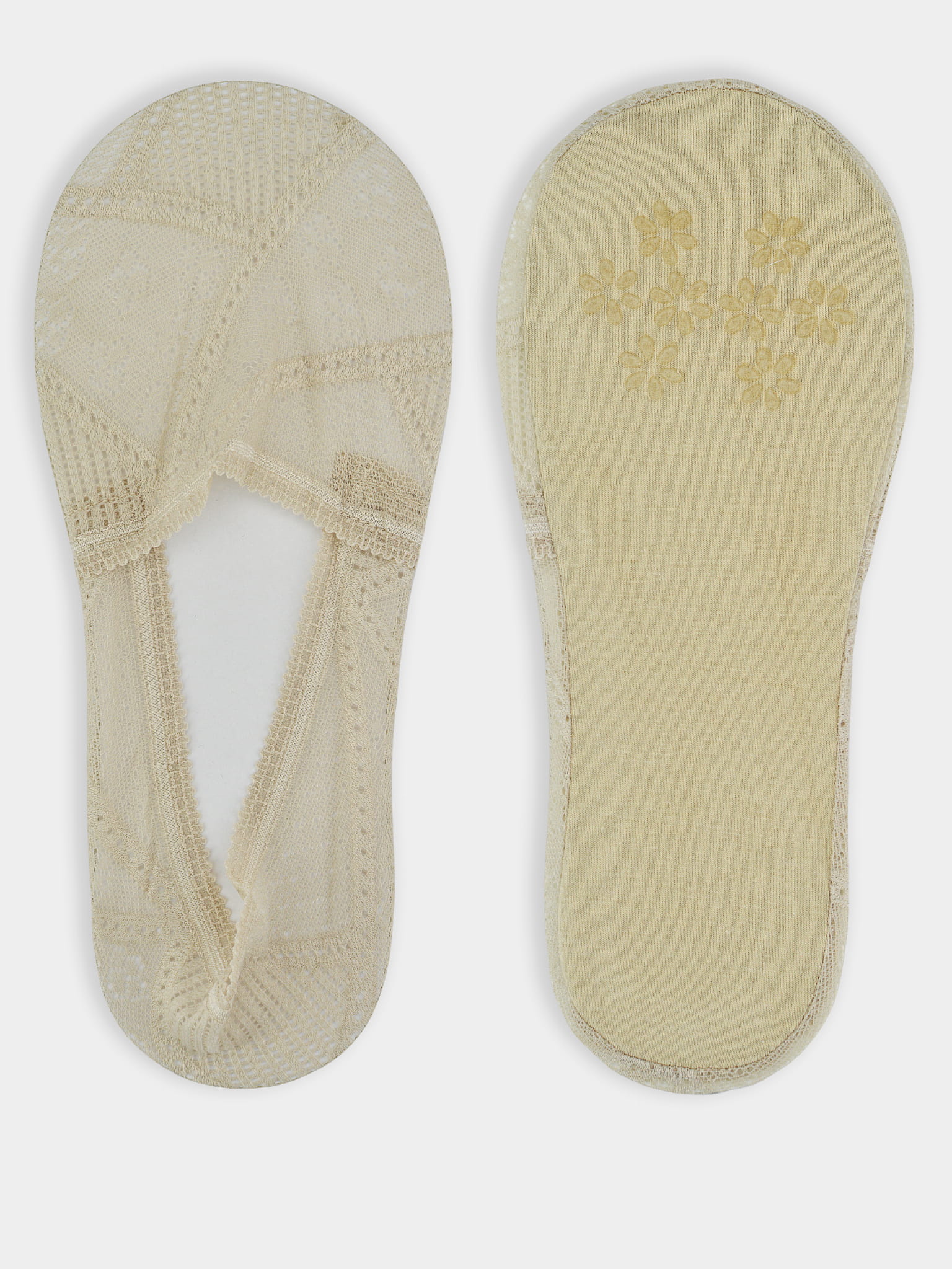 SN032-W-03 Stopki niskie koronkowe z silikonem i ABS beż latte