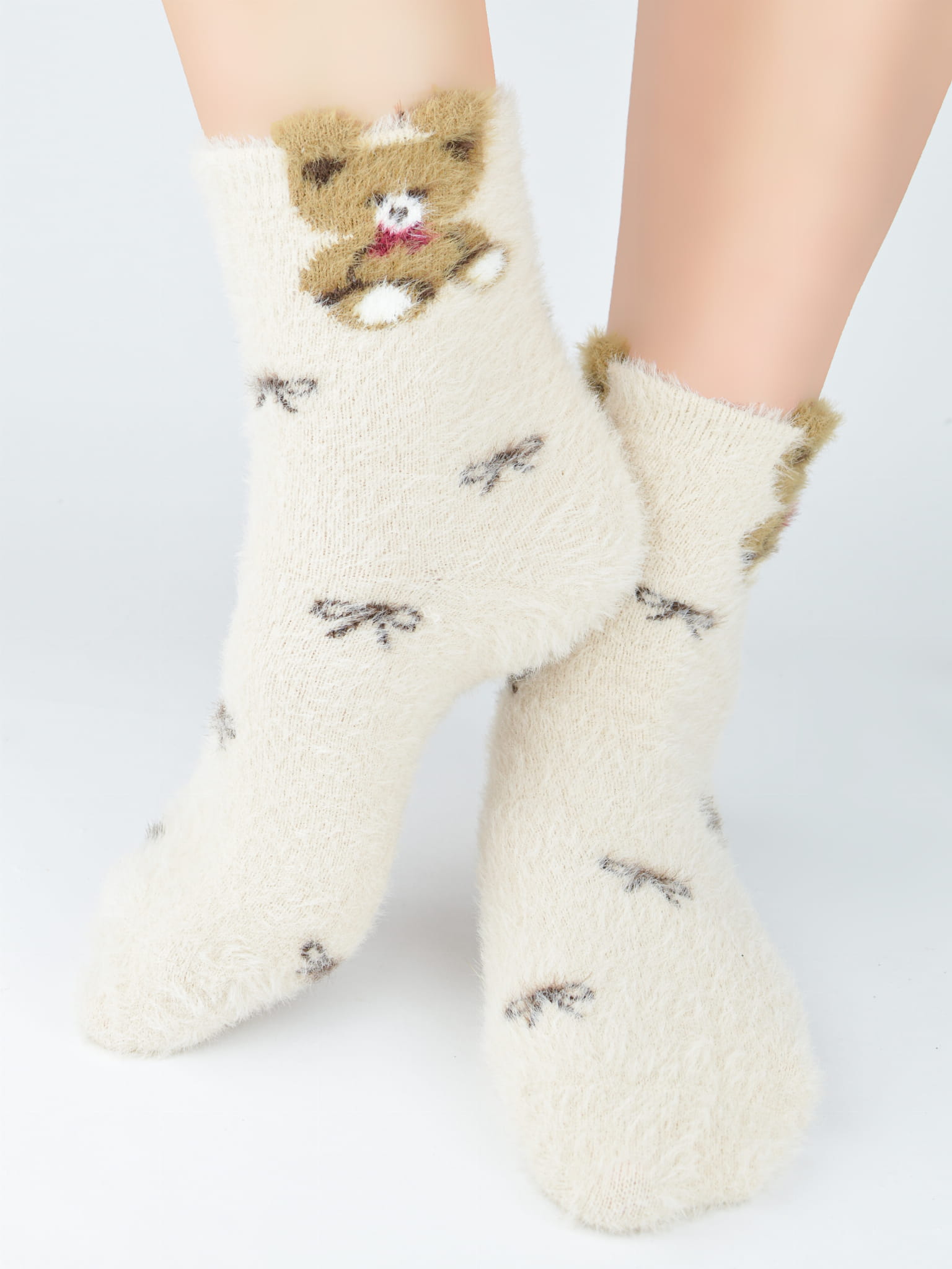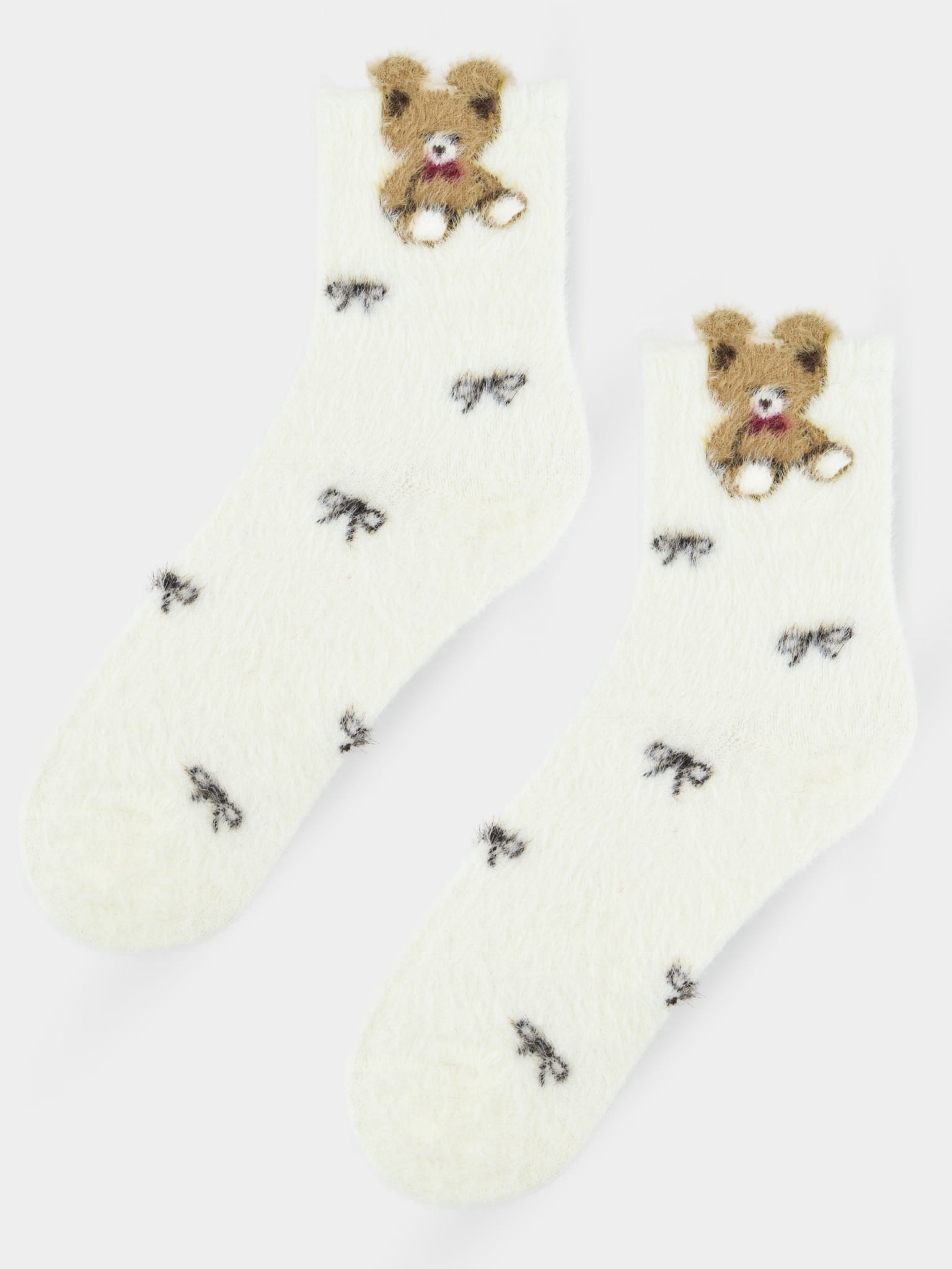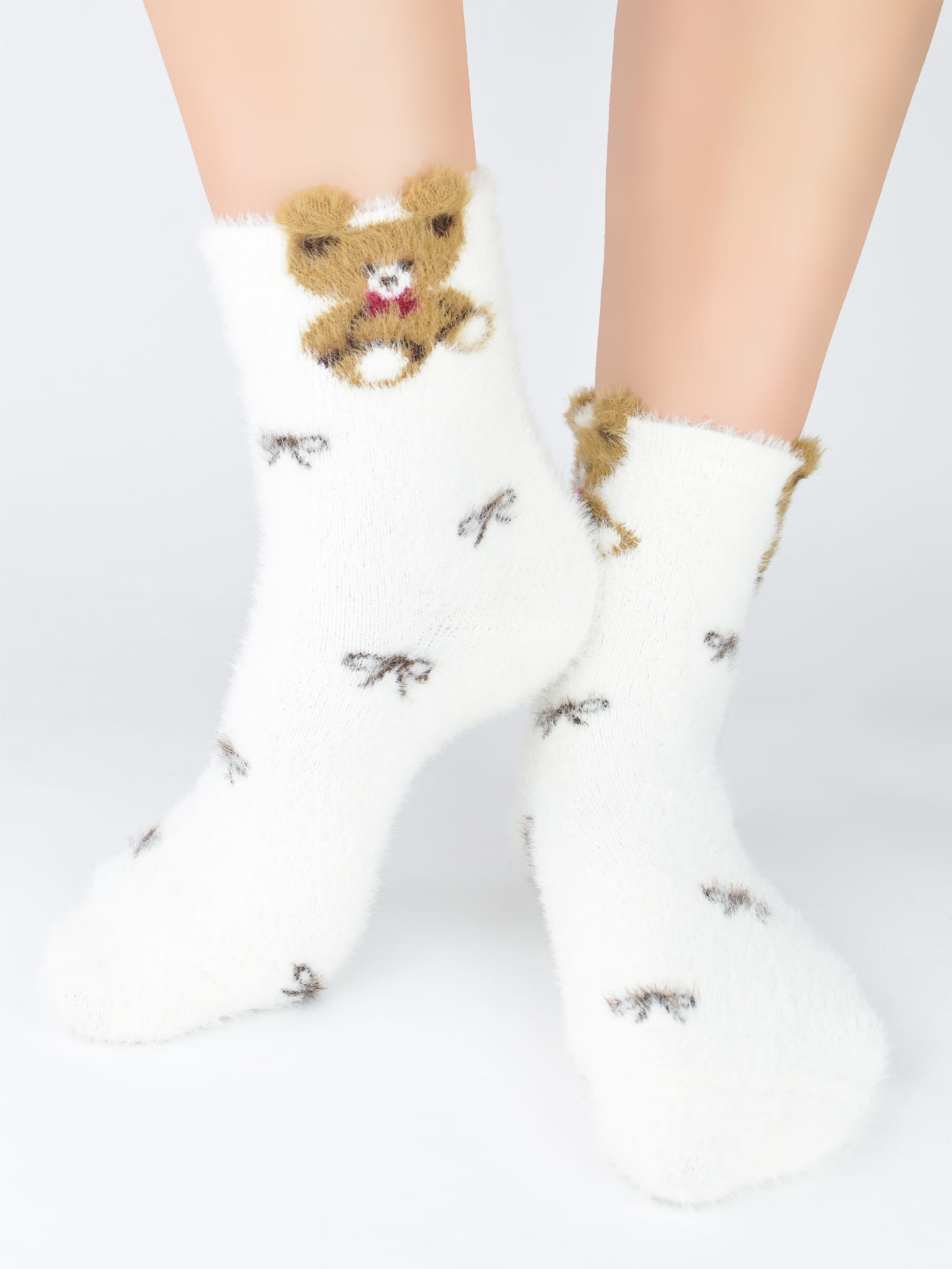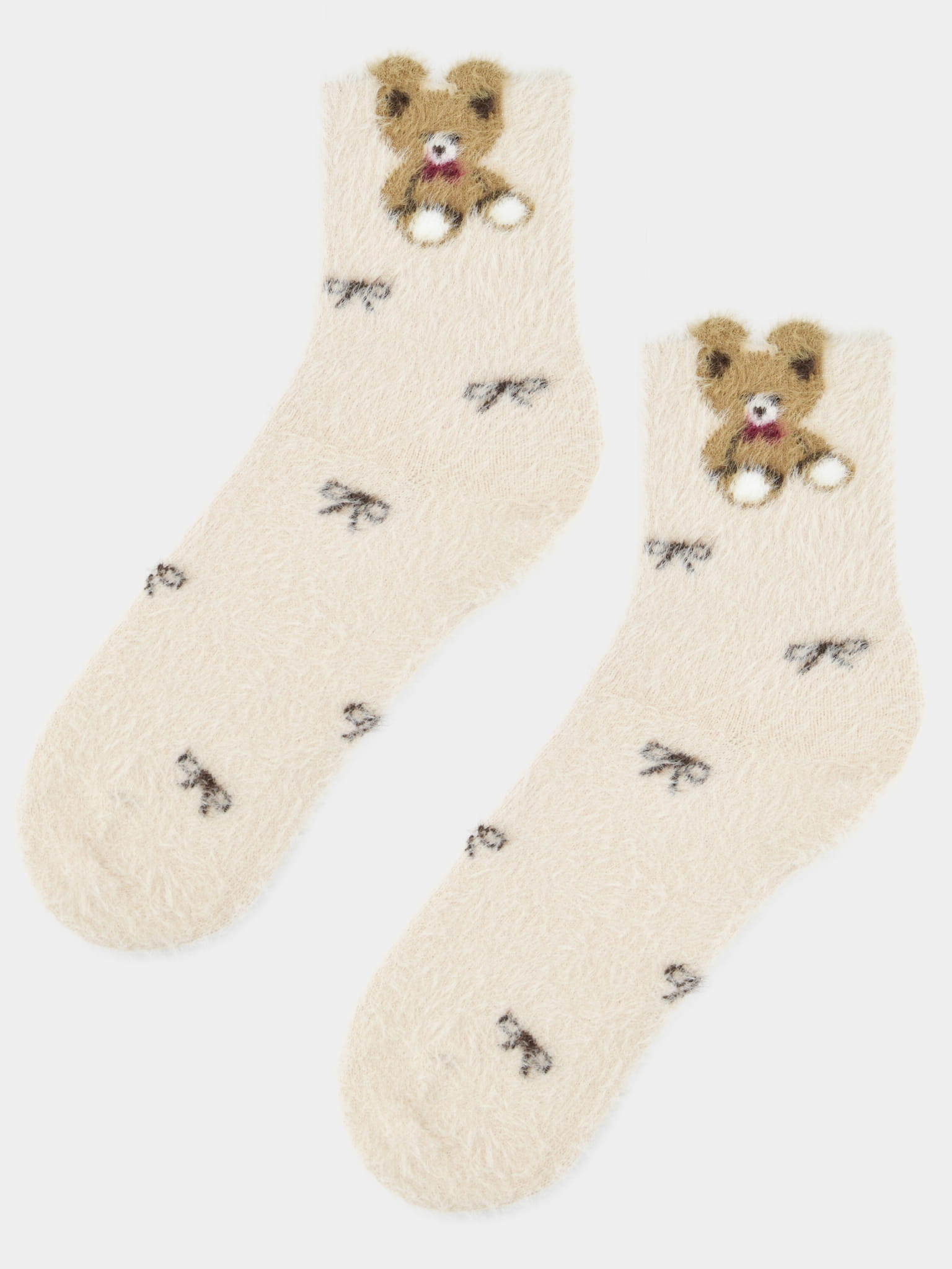 SP005-G-01 Skarpety puchate miś kokardki mix