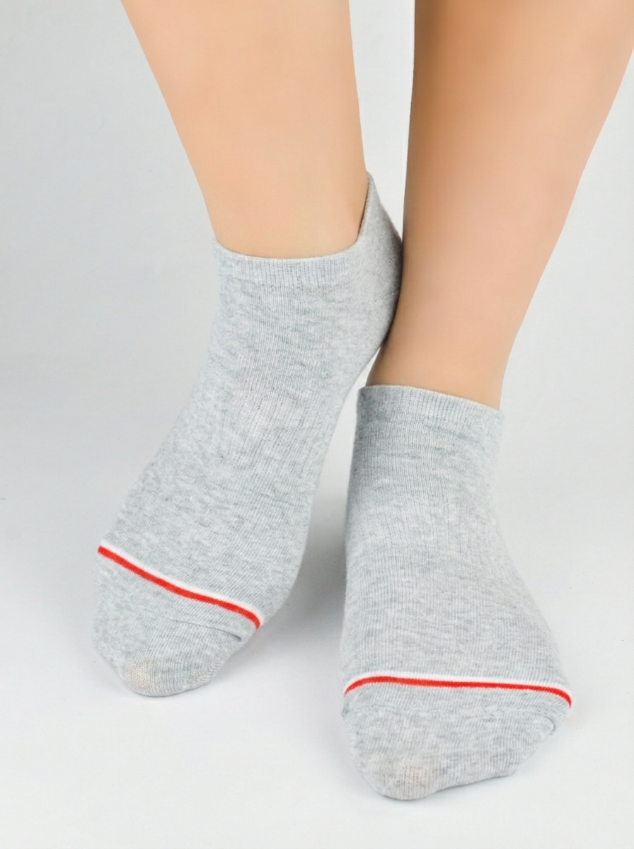 ST080-B-01 Stopki bawełniane chłopięce sportowy ściągacz na środku stopy i kolorowy pasek