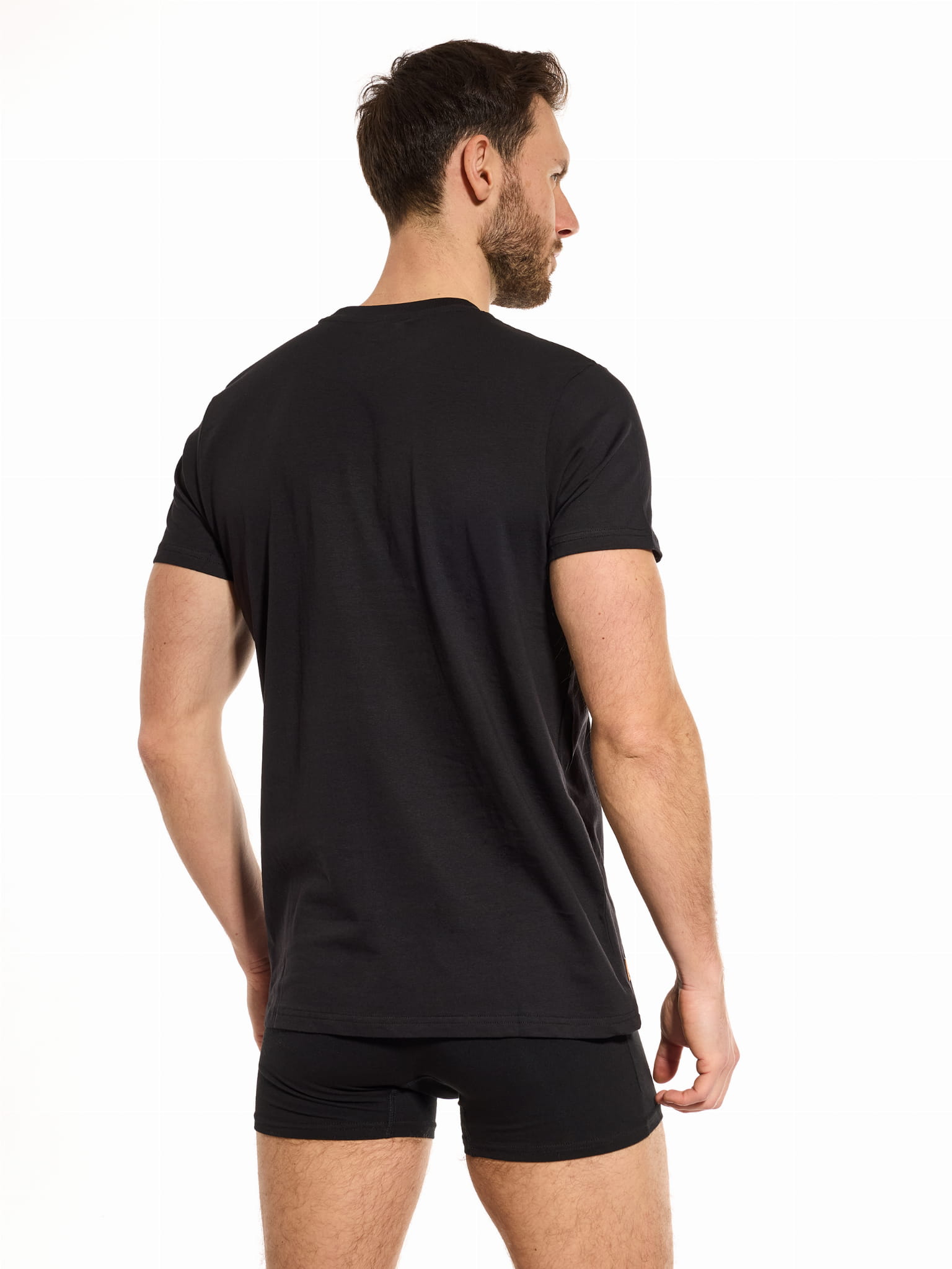 TT018-M-02 T-shirt męski ze skórzaną naszywką czarny